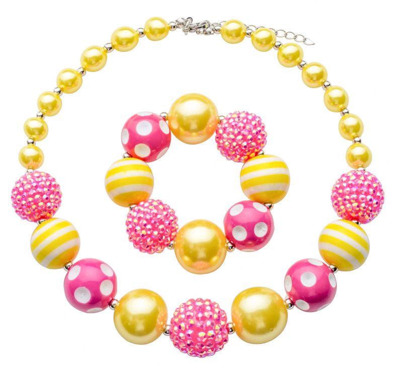 Vcmart Girls Necklace And Bracelet Set Chunky Bubblegum Beads Kids Jewelry With Gift Box