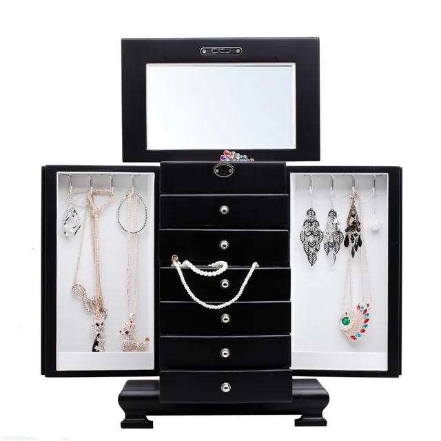Costume heirloom and newly acquired valuables ranging from necklaces to earrings to rings and even bracelets and anklets. Mirrored lid segmented felt lined drawers. Not only do they store all your favorite items of jewelry but they include a mirror that can be used to reflect and enhance your stored jewelries beauty or as a functional mirror in which to check that your earrings are working with your makeup.
