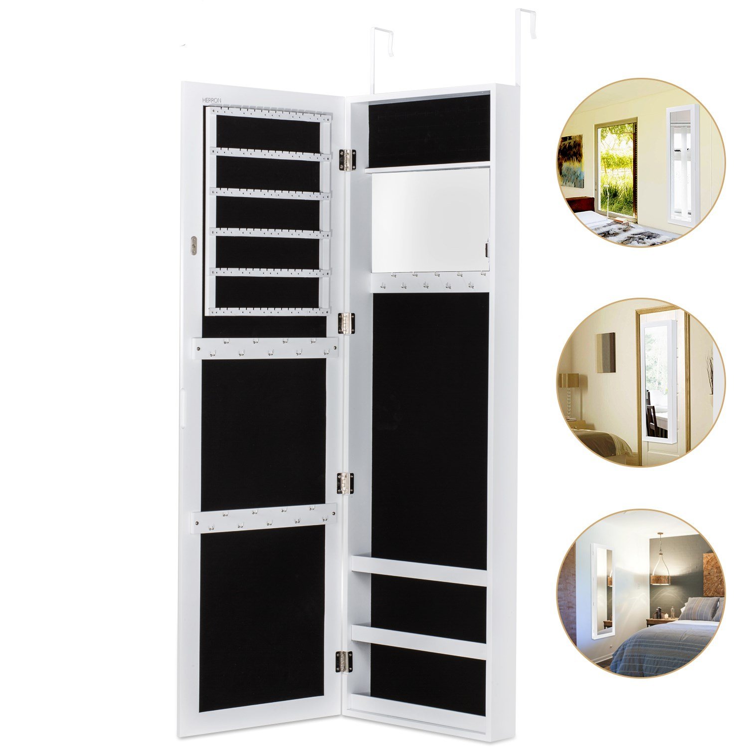 White Over The Door Mirror Jewelry Organizer