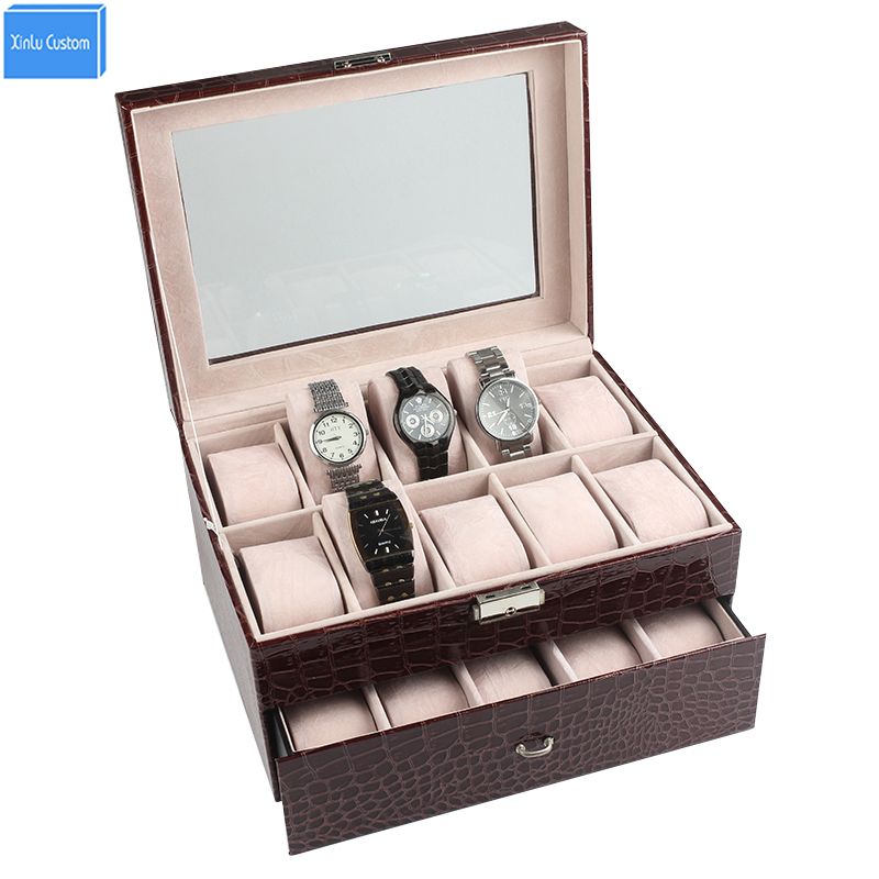 Luxury Case For Brand Watches Jewelry Display Storage Time Leather Velvet Window Lock 2 Layer 20 Slots Box Hour Wholesale Retail