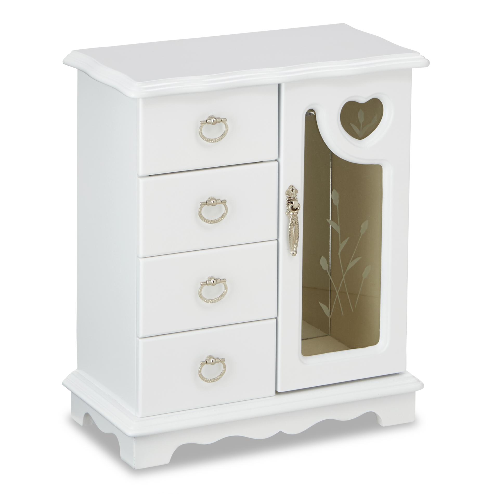 4 Drawer Mirrored Jewelry Cabinet Mdf Wood Mirrored Glass In Antique White Overstock Com Shopping The Best Deals On Cabinets