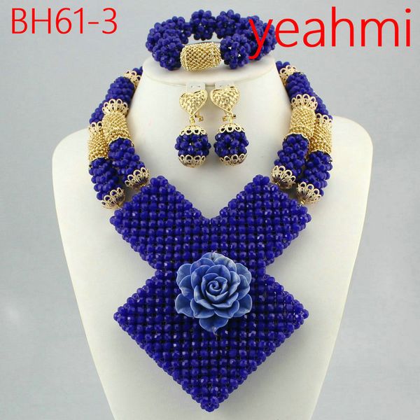 Lilac Blue Gold Nigerian Wedding African Beads Jewelry Set Crystal Beads Women African Costume Three Layers Jewelry Set