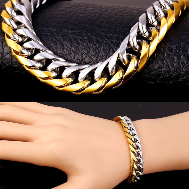2019 U7 Hiphop Gold Bracelet Men Jewelry Two Tone Gold Plated Trendy 11 Mm 23 Cm Thick Rock Perfect Party Gift Men Accessories From Mgc8wholesale