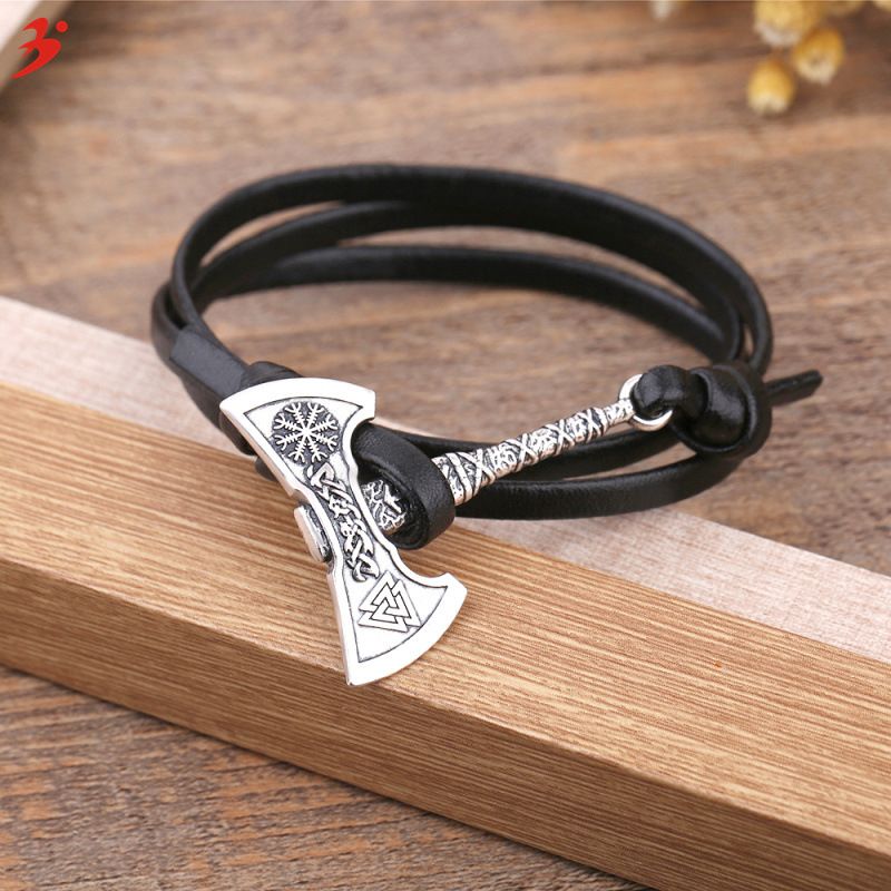 Mens Ax Viking Bracelet Antique Silver Hatchet Handmade Braided Multilayer Leather Pirate Bracelet For Male Hand Jewelry Bracelet Men Mens Silver