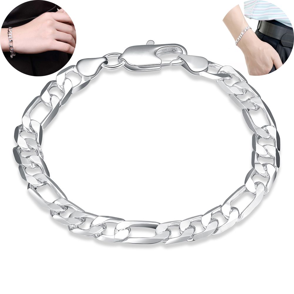 8m Flat Figaro Chain Bracelet Men Link Bracelet Wholesale 925 Sterling Silver Plated Fashion Jewelry Bracelet Bangle Unisex Accessories