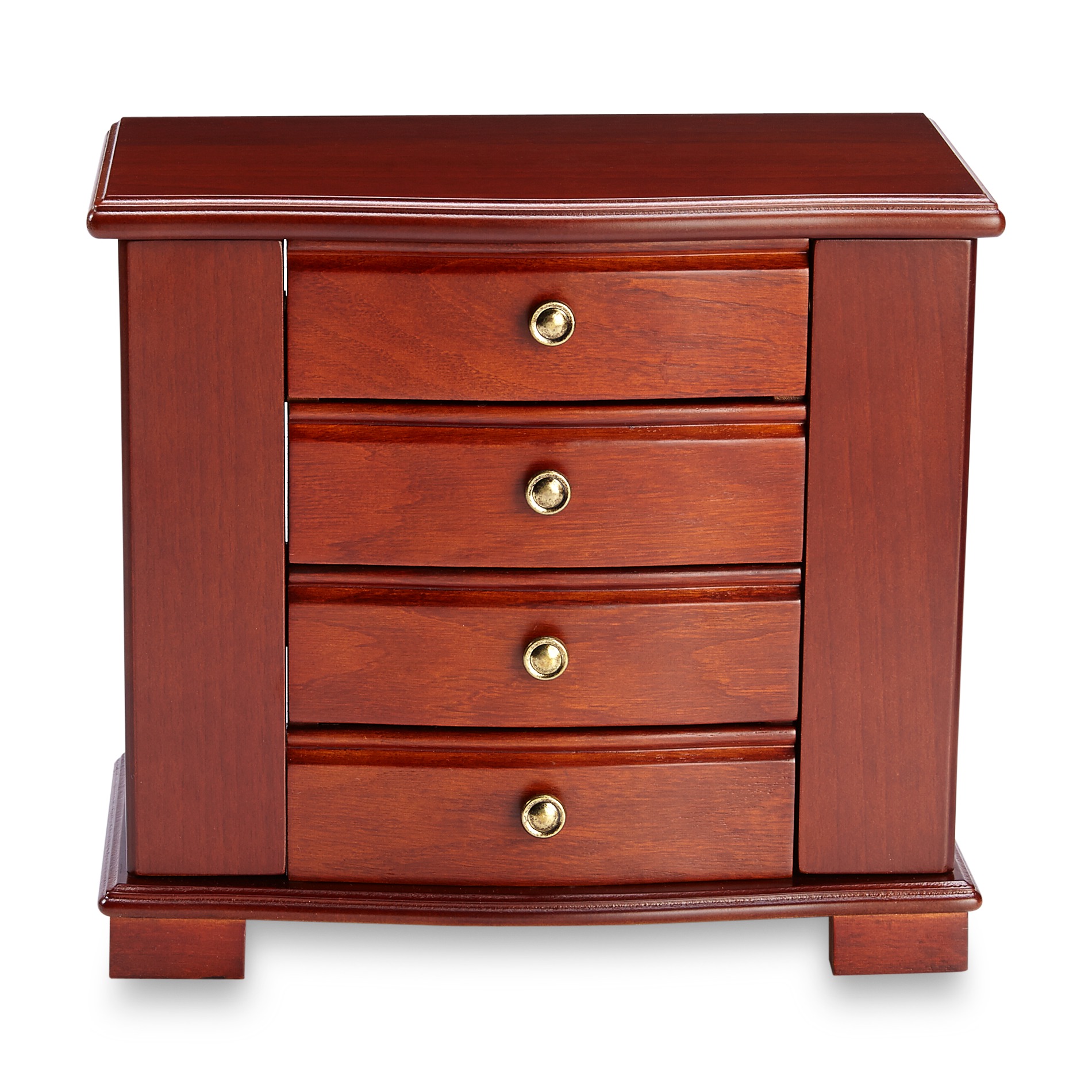 4 Drawer Jewelry Chest Shown In Brown Maple With A Rich Tobacco Finish
