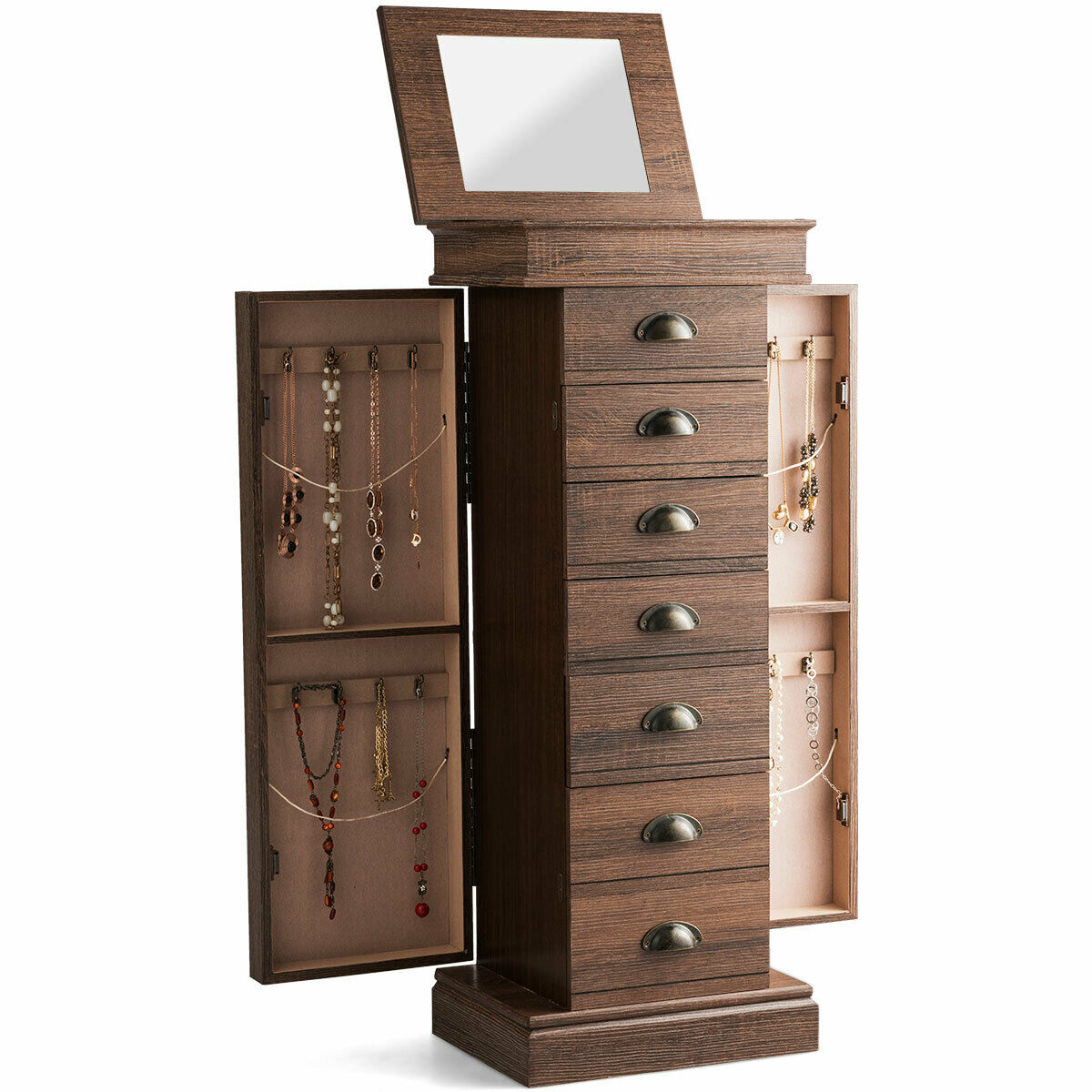 Fdw Jewelry Cabinet Jewelry Chest Jewelry Armoire Wood Jewelry Box Storage Stand Organizer With Side Doors 7 Drawers Makeup Mirror